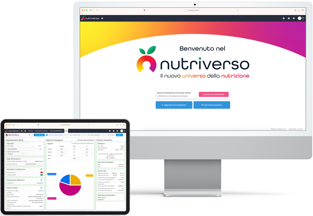 Elaborazione di diete altamente personalizzate per pazienti con patologie, allergie e intolleranze, grazie alla possibilità di selezionare oltre 150 patologie e più di 650 allergie e intolleranze